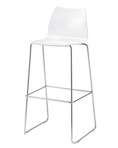 Barstolar Tuff. Stilfull och skön barstol som är designad av Tom Stepp. Stolen har en stadig bas med kromade ben och en sits tillverkad av lackat trä i färgerna svart eller vit.