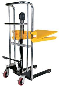 Manuell ministaplare Ara. En ministaplare med lyftkapacitet 400 kg. Löstagbar plattform 650 x 550 mm. Gaffelbredd 110 mm, bredd över gafflarna 580 mm. Manuella med hand- och fotpump. Gafflarnas höjd är endast 85 mm i nedsänkt läge.
