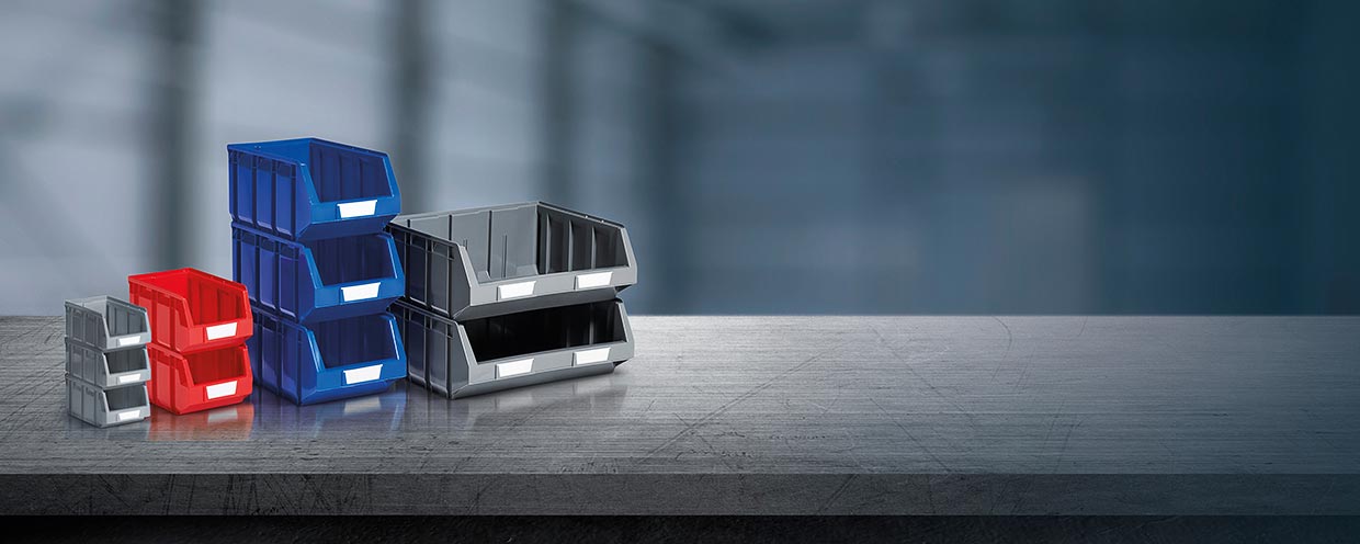 Självtömmande tippcontainer i olika färger för att underlätta källsortering och avfallshantering. hjul och lås finns som tillbehör.
