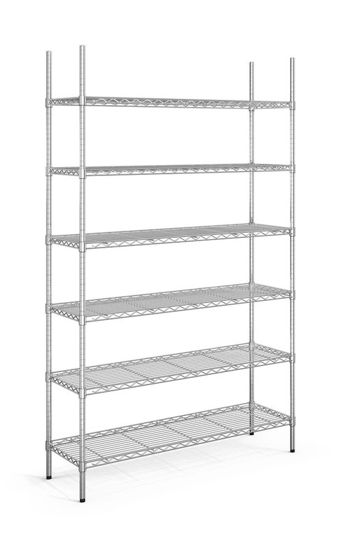 Monteras utan verktyg och kan användas för mycket – lager, arkiv, kontor och butik. En gummiklubba är allt som behövs för att fästa höjdjusteringsskruvarna.