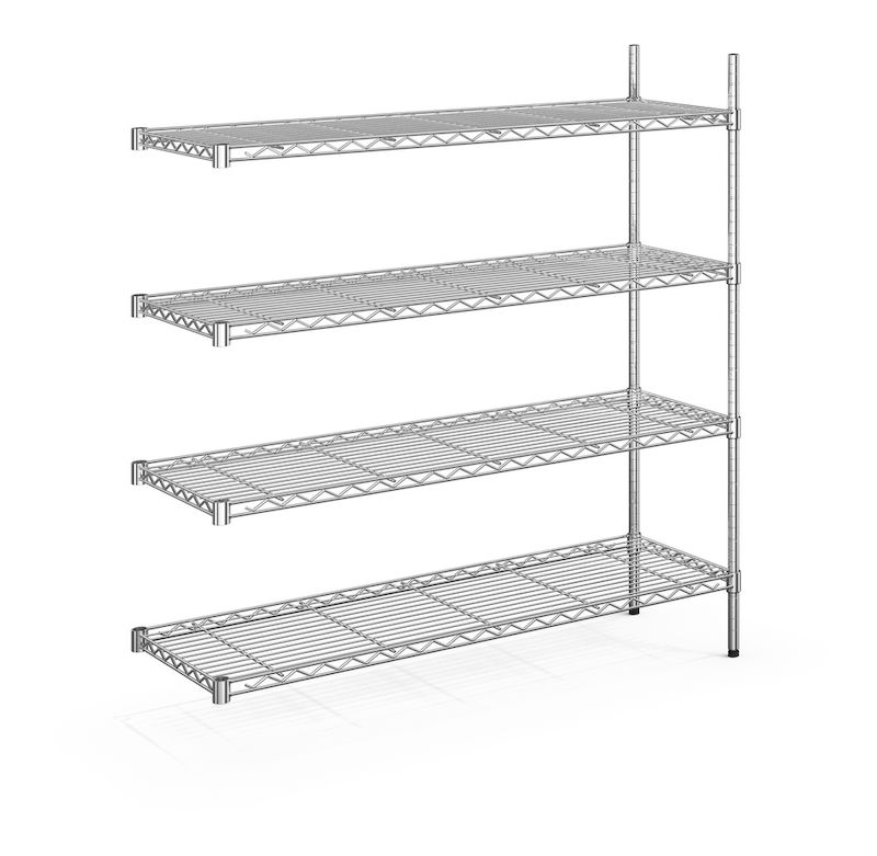 Gallerhylla Joel, belastning per hyllplan 100 kg, BxD 1220 x 460 mm, utbyggnadssektion, höjd 1370 mm, 4 hyllplan. Optimal platsanvändning tack vare monteringen av utbyggnadssektioner eller hörnhyllor med S-krokar. 2 S-krokar per hyllplan ingår i leveransen av utbyggnadssektioner och extra hyllplan. Vid användning av S-krok minskar belastningen per hyllplan till 100 kg.