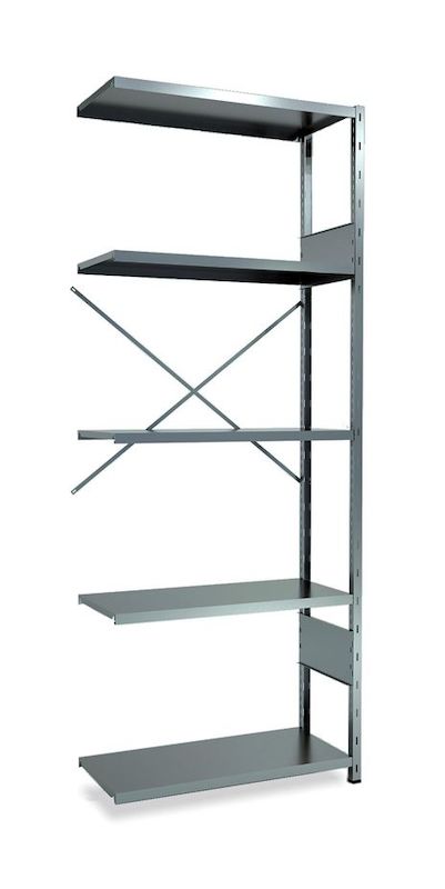 Lagerhylla Galvaniserad, utbyggnad, BxDxH 965x400x2500, öppen. Obs. det här är en påbyggnadssektion – komplettera med en grundsektion