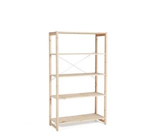 Färdiga sektioner trähyllor som finns i två olika höjder: 1780 mm med fem hyllplan (liten) samt 2180 mm med fem hyllplan (stor). Två olika bredder på sektionerna 830 mm och 1030 mm. Djupet är 300 mm eller 400 mm. Hyllorna placeras på fyra förzinkade hyllbärare i valfri höjd i steg om 50 mm.