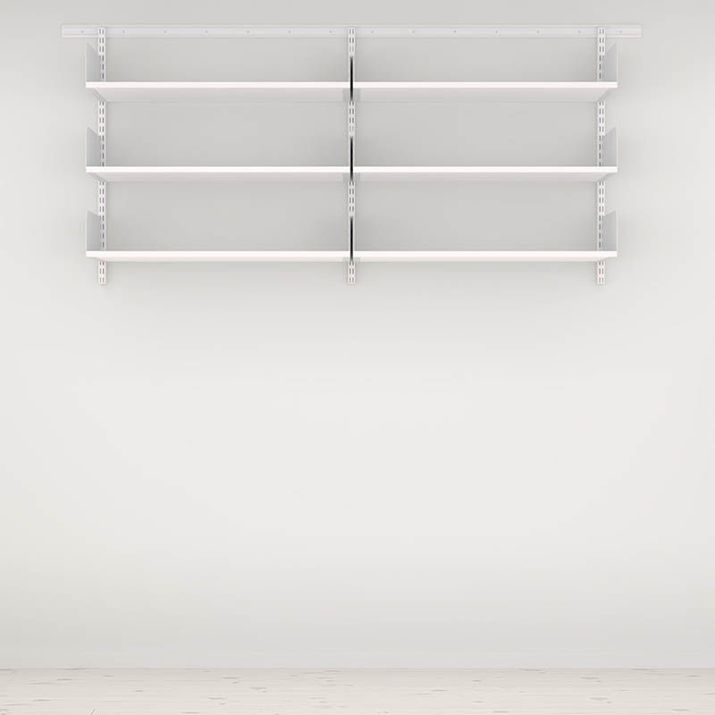 Hyllsystem ELFA vägghylla, låg grund, plåt, BxHxD 940x988x325 mm. Ett komplett paket ELFA vägghylla med 3 st hyllplan i laminat med hyllgavel i plåt, inklusive 1 st bärlist och 2 st hängskenor.