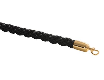 Avspärrningsrep Alman, flätad L 1500 mm, mässingsbeslag/svart. Avspärrningsrep med snäpplås och rostfria beslag i ändarna. Finns i två varianter; flätade rep eller klädda med sammetstyg. Finns i flera olika färger.