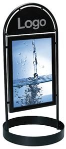 Toppskylt med plats för logotyp. Stommen är försedd med två stycken 38 mm svarta snäppramar för enkelt byte av budskap.
