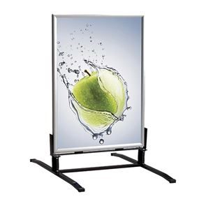 Stativ i pulverlackerat stål och snäppram i pulverlackerad aluminium. Finns i två olika storlekar och två olika färger.