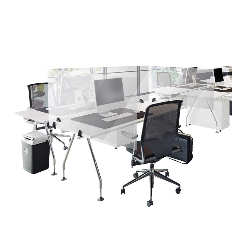 Bordsskärm Lodiken. Arbeta skyddat men ändå öppet och synligt med kollegorna. Enkel och snabb montering med två bordbeslag för skivtjocklek på 15-34 mm. Enkelsidigt beslag passar lika bra på höj och sänkbara skrivbord. Dubbelsidiga beslag passar för fasta bord. Perfekt för arbetsplatser med öppna landskap där skrivborden står mitt emot varandra. Lätt att rengöra och desinficera. Tillverkad av akrylglas och polystyren. Det finns 3 olika bredder som kan kombineras. Levereras komplett med två bordsbeslag.