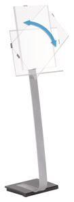 Vrids enkelt till läge för stående eller liggande format. Stället har reflexfritt akrylglas, som är justerbart i höjdled.