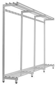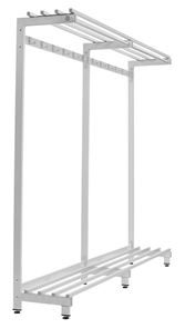 En tålig och stilren enkelsidig klädhängare med skohylla för fristående placering på golv. Klädhängaren passar exempelvis mycket bra i omklädningsrum, receptioner eller på toaletter.