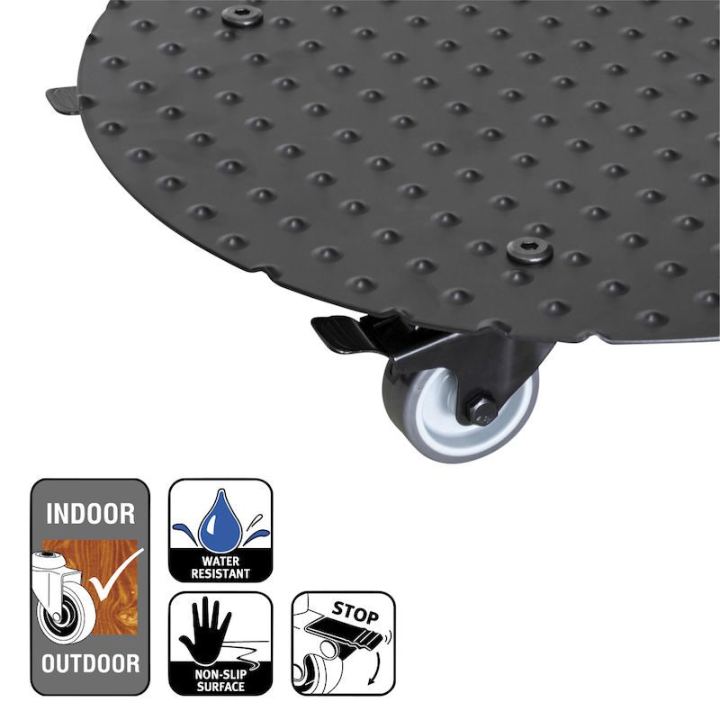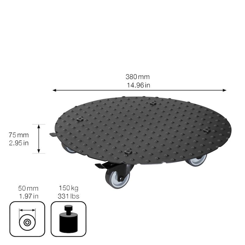 BeskrivningBlomvagn Aluminium Alaska Wagner, lastkapacitet 150 kg, rund, Ø 380 mm, svart
