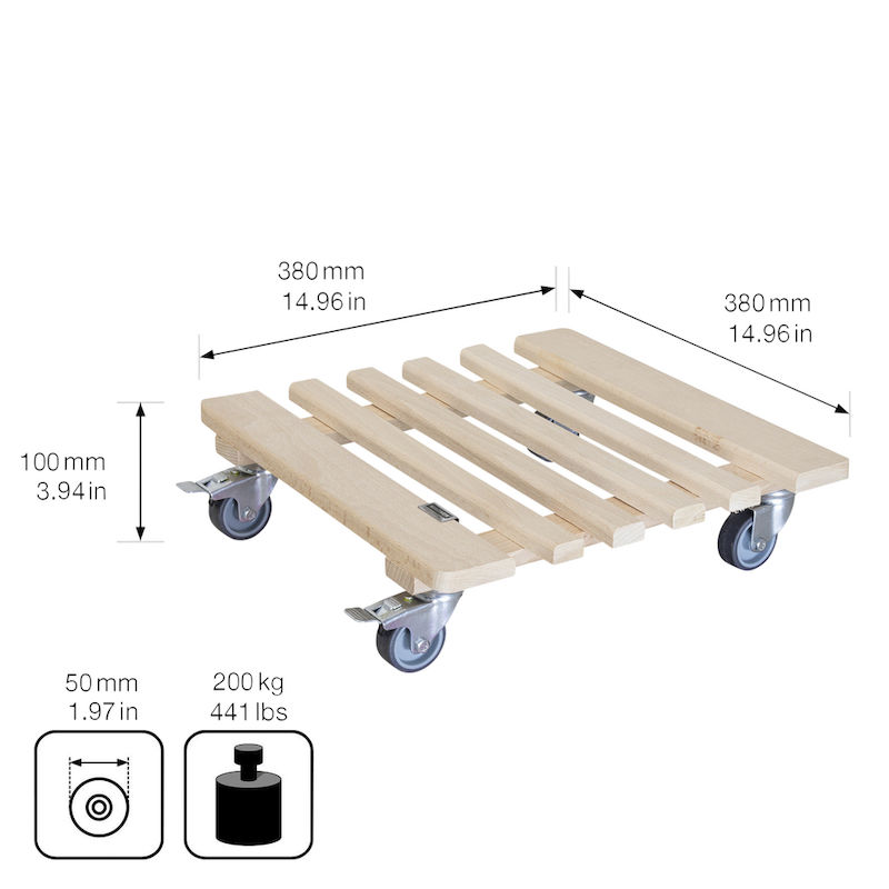 BeskrivningBlomvagn Trä Piano Wagner, lastkapacitet 200 kg, LxB 380 x 380 mm, natur