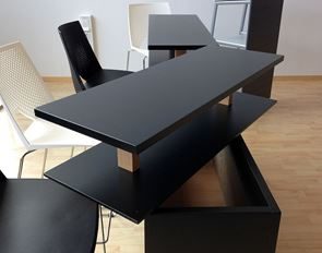Täcklock med bardisk tillverkad i högblank lackerad MDF och finns i svart eller vit som standardfärg. Passar den flexibla grundmodulen System A.