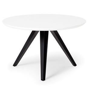 Ett annorlunda bord med läckert fasad kant, vit eller svartlackerad bordsskiva. De tre svartlackerade benen ger bordet en modern prägel och gör att det passar till alla typer av loungemöbler.