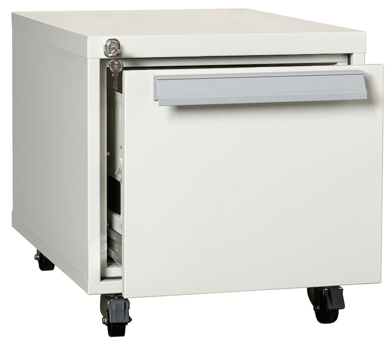 Brandklassad mapphurts för hängmappar eller pärmar. Utrustad med kraftiga gummihjul, varav de främre är låsbara. Den utdragbara lådan har nyckellåsning. Lådan är lätt att dra ut även vid full last då den är försedd med kraftiga kullagerexpander.