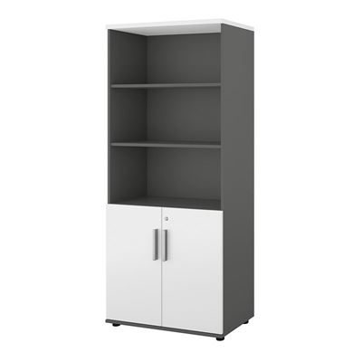 BeskrivningBokhylla Portland, BxDxH 800x420x1845 mm, mörkgrå/vit, med dörrar, dörrhöjd 700 mm