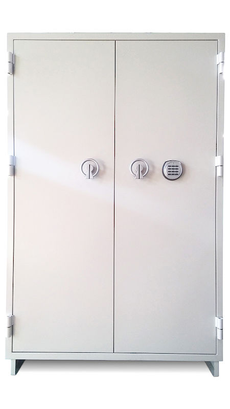 Brandklassat dokumentskåp utrustat med elkodlås för brandsäker förvaring av exempelvis affärshandlingar, kontrakt, dokument, pärmar, bokföringsmaterial eller ritningar.