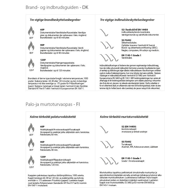 Dokumentskåp FRS 93, EN15659, LFS 60 P, BxDxH 565x450x970 mm. Ett dokumentskåp för brandskydd av affärshandlingar, försäkringsbrev, kontrakt, deklarationer med mera. Ett enkelt och smidigt dokumentskåp i brandklass LFS 60P enligt EN15650:2009. Alla modeller har kolvlås och låsning i bakkant. Kodlås med 2 utbytbara koder. Förankringssats medföljer, förberett för bultning i botten. Finns i flera olika storlekar. Med 2 hyllplan och 1 låsbar låda. Innermått BxDxH 426x301x786 mm. Den låsbara lådan kan tas bort på alla modeller utom FRS120 och FRS165.