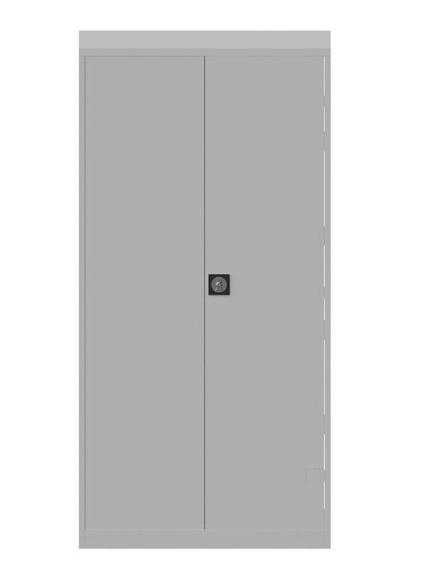 Förvaringsskåpet är pulverlackerat med struktur för en hög kvalité och finish, pulverlackeringen är mycket stryktålig och motståndskraftig mot repor. Hyllorna klarar 45 kg utbredd last per hyllplan. Dörrarna är utrustade med ljuddämpande beslag.