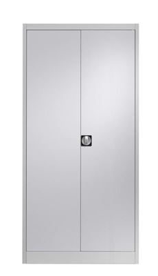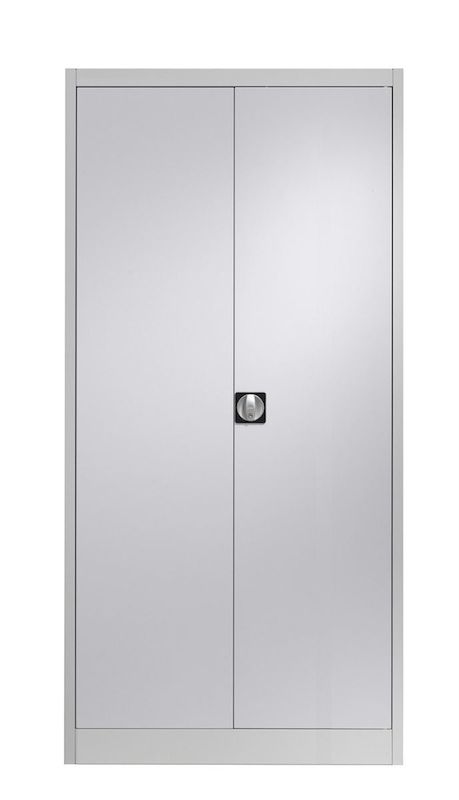 Plåtskåp Universal, dubbeldörr, D 420 mm, ljusgrå, från 2 st. Stabil, svetsad stomme av 0, 88 mm tjock, återvinningsbar stålplåt med högklassig brännlackering som tål extra tuffa tag. Sockelhöjd 100 mm. Lackerade hyllplan, grafitsvarta (RAL 9011). Lastkapacitet 65 kg per hyllplan utbredd belastning. Ställbara i höjd i steg om 35 mm. Vridstyva dörrar med boxförstärkning, öppningsvinkel 135°. Trepunkts låsning med säkerhetscylinderlås, individuellt låsande. Levereras med 2 nycklar som standard. Finns i flera färger och utförande.