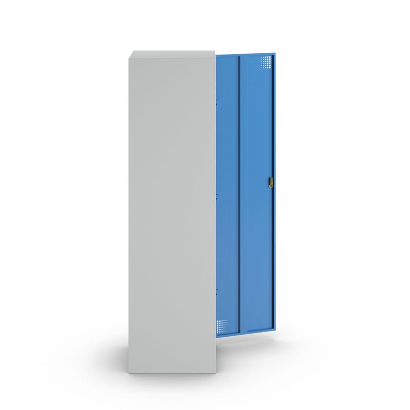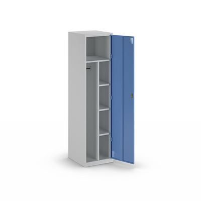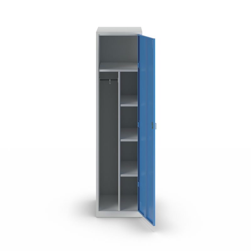BeskrivningStädskåp Alvina, skiljevägg i mitten, ljusgrå/ljusblå, vridregel