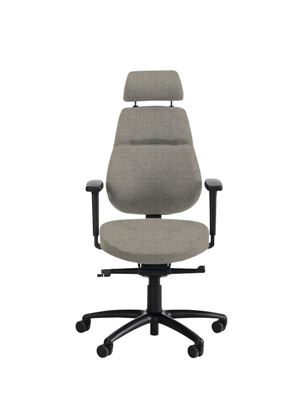 I standardutförande ingår en ergonomiskt formad sits med lutningsjustering upp till 16°, justerbar sitthöjd och sittdjup och ett höj- och sänkbart ryggstöd. Ryggstödet har ett individuellt inställbart ländryggsstöd. Vippfunktionen är både justerbar och låsbar. Stolen har multifunktionella, individuellt justerbara armstöd, ett höj- och sänkbart nackstöd och en stabil kryssfot i aluminium som ger lång livslängd.