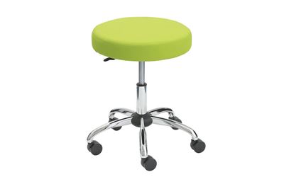 Åkstol Jarl, sitsdiameter: 460 mm, äppelgrön klädsel. Denna pall är en universalprodukt, lätt att ha till hands. Perfekt för många användningsområden på kontoret. Den har en stor, bekväm sits med en diameter på 460 mm och klädsel av 100 % polyester. Den stabila kryssfoten i förkromat stål är både elegant och robust. Stolen förflyttas smidigt och enkelt på speciella designhjul för mattgolv med en diameter på 60 mm.