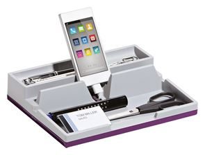 Förvaringsfack Varicolor organizer. Förvaringsfack för skrivbord eller låda med två stora förvaringsutrymmen. Integrerad hållare för surfplatta och smartphones samt dold kabelkanal. Halkfria gummifötter.