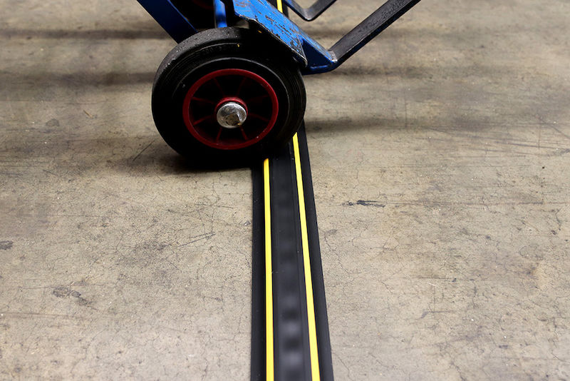 Kabelbrygga Standard 3000x68x11 mm, svart/gul. Praktisk kabelbrygga som passar både på kontoret och i fabriken. Tillverkad av PVC-gummi i färgerna helsvart eller svart med infälld gul varningslinje längs båda sidorna. Lätt lutning gör att snubbelrisken minskar samtidigt som kablarna skyddas. Räfflad undersida håller kabelbryggan på plats även på lite halt underlag.