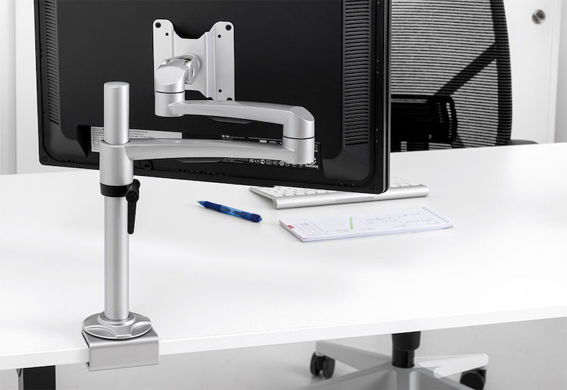 Monitorarm Kondator LC15, silver. Stilren och robust 4-ledad monitorarm för bordskantsmontage, lackerad i silverfärg, som även kallas "Oslo". Armläng 465 mm. Fäste Vesa 75/100 med snabblåsning. Max belastning 14 kg.
