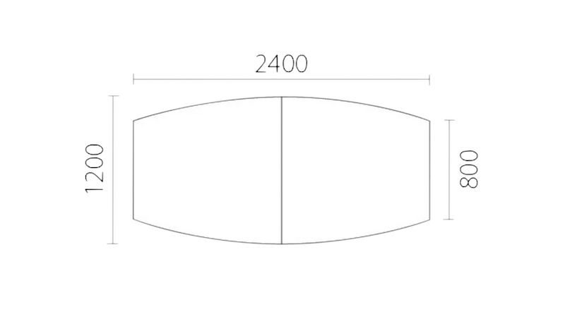 Bordet är 720 mm högt. Bredden uppgår till 1200 mm på det bredaste stället och 800 mm på det smalaste. Hos de mindre varianterna är bordsplattan ellipsformad medan de längre varianterna har en lätt bikonvex form.