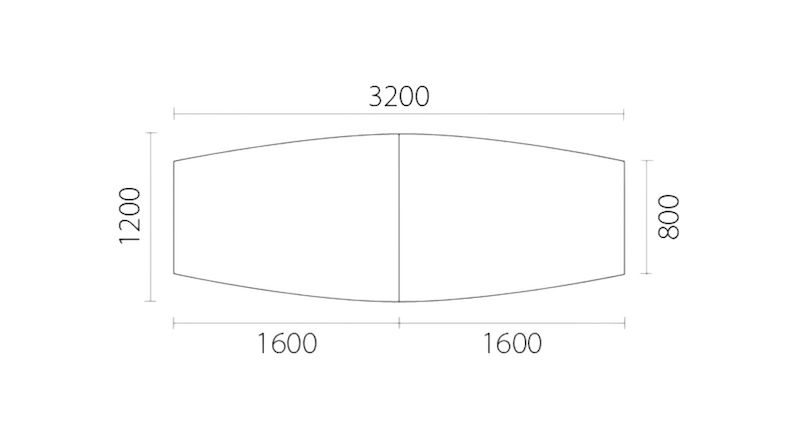 Bordet är 720 mm högt. Bredden uppgår till 1200 mm på det bredaste stället och 800 mm på det smalaste. Hos de mindre varianterna är bordsplattan ellipsformad medan de längre varianterna har en lätt bikonvex form.