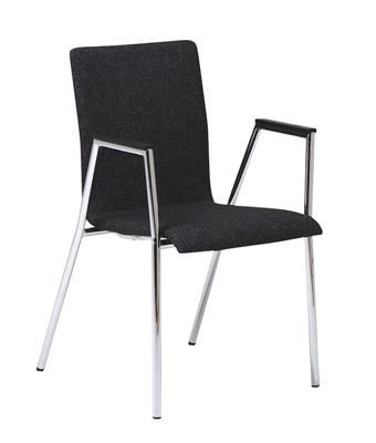 Konferensstol Cadeira. Elegant konferensstol eller besöksstol med underrede i krom och stoppning i sits och rygg. Armstöd i plast. Stapelbar, max 6 konferensstolar på höjd. Sitthöjd 455 mm, sittbredd 500 mm, sittdjup 450 mm. Finns i flera olika färger.