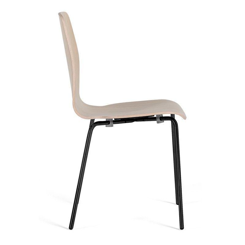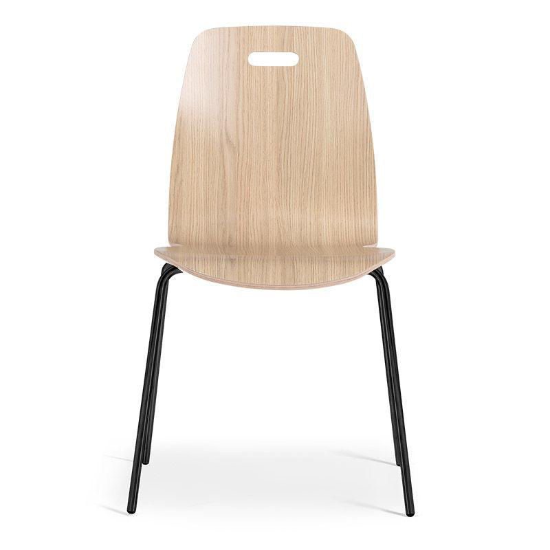 Skalstol Alina, stapelbar, 4-pack, ek/svart. En stapelbar skalstol för lunchrum och konferensrum. Finns i flera färger. Formpressad sits och rygg i ett stycke med en yta av hård och slitstark högtryckslaminat. Underredet i form av en kryssfot är kromat eller lackerat.