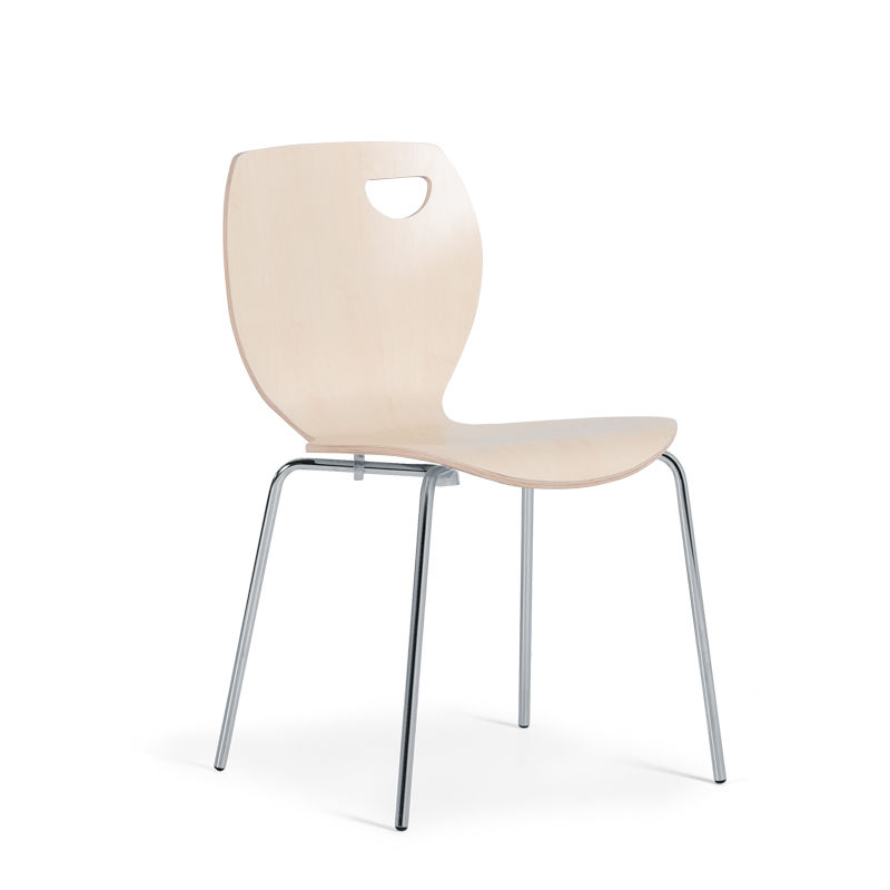 BeskrivningSkalstol Laura, stapelbar, 4-pack, björk/krom