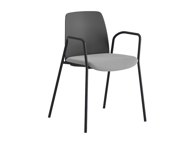 BeskrivningStol Helmer, sits stoppad, ryggstöd plast, 4-pack, sits mörkgrå/ljusgrå, underrede svart, med armstöd