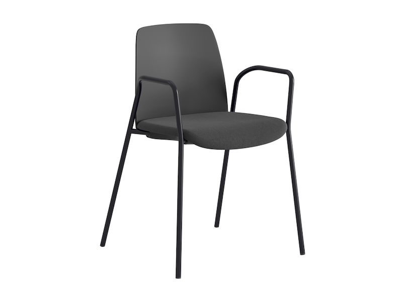 BeskrivningStol Helmer, sits stoppad, ryggstöd plast, 4-pack, sits mörkgrå/svart, underrede svart, med armstöd