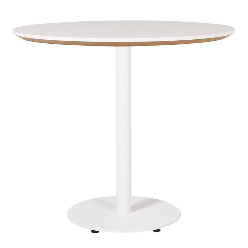 Pelarbord Trend. Ett modernt bord med skiva i vit laminerad MDF. Skivan har vit kantlist med 30 graders fasad kant för ett smäckert utseende. Stativ finns i krom, svart och vit lackering och med rund alternativt fyrkantsfot. Höjd 755 mm. Skivan finns i flera olika storlekar.