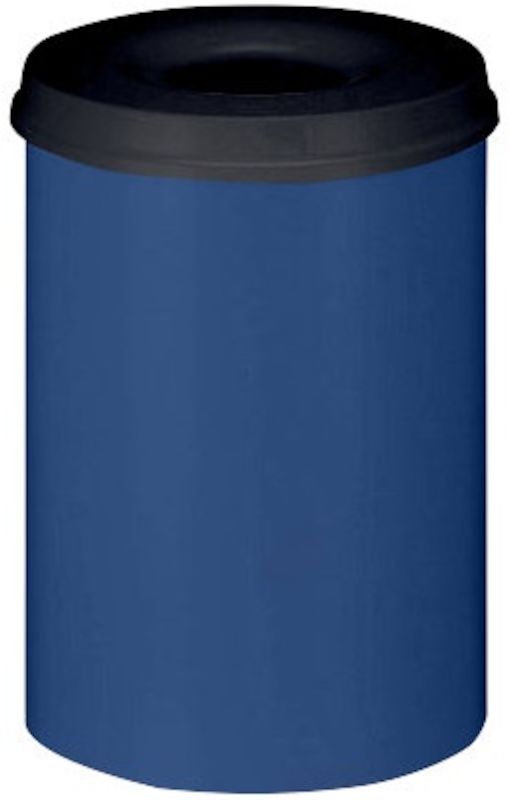 Brandsäker Soptunna, 30 l, H 470 mm, blå. Vår brandsäkra soptunna förhindrar uppkomst av brand från glöd eller liknande. Den speciella utformningen av täcklocket gör att syretillförseln stryps och branden självdör. Stomme av stålplåt med färgad plastbeläggning.