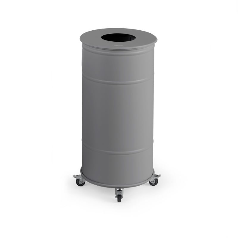 Soptunna Brooklyn Bin Big, H 810 mm, hjul, singel med lock, grå.En tunna med hög kvalité i tidlös och klassisk design. Tunna ø 330 eller 400 mm av stålplåt, pulverlackerad med matt färg. Säckhållare i tunnan, anpassad för 70 liters säckar. Finns som singel/dubbel/trippel i 3 olika färger.