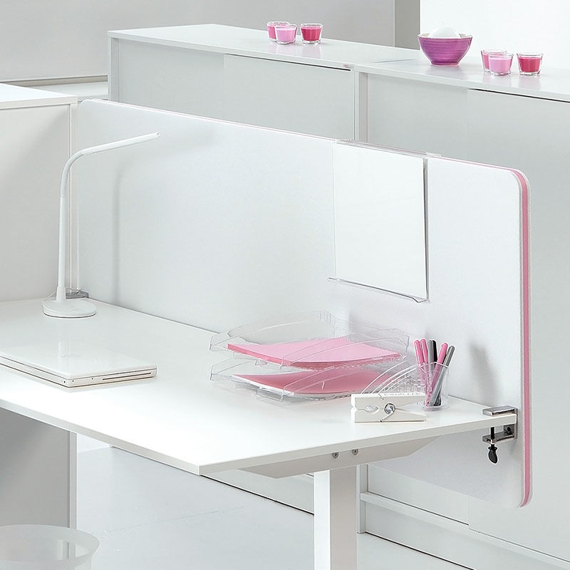 Bordsskärmarna är 30 mm tjocka och finns i två varianter, för placering ovanpå bord eller frontmontering.