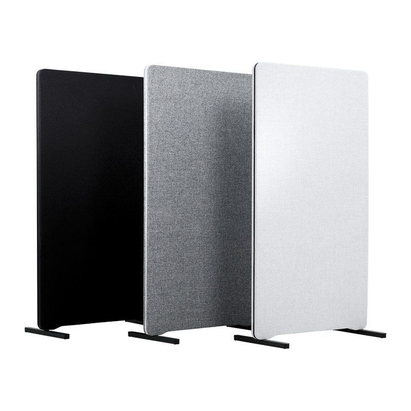 Edge golvskärm 1650x1200 mm, Ljusgrå, Vit. Modern skärm med enkel och ren design, samtidigt tilltalande för det flexibla kontoret. Skärmarna dämpar effektivt störande ljud som uppstår i kontorslandskap. Golvskärmen är uppbyggd på en massiv trästomme med ljudabsorberande fyllning.