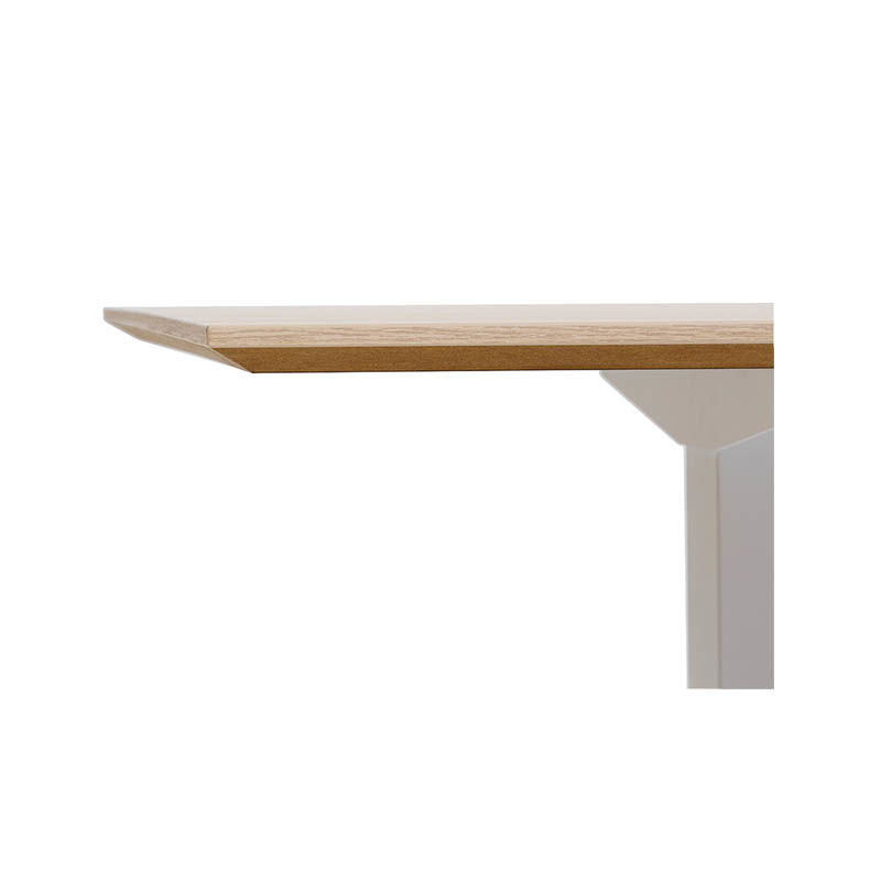 Höj och sänkbart hörnskrivbord Atlanta Trend, vänster, LxB 1800x1200 mm, ek/vit, ett elektriskt höj och sänkbart skrivbord. Bordskivan kommer med fasade kanter vilket ger en stilren känsla av ett tunt och modernt höj och sänkbart skrivbord som är tilltalande för ögat. De rundade hörnen är gjorda för att passa in i en modern kontorsmiljö med fristående placering av skrivbord. Bordskivan är tillverkad i 25 mm tjock MDF belagd med vit laminat samt en 10 mm vit kantlist av ABS-plast. Det höj och sänkbara stativet är lackerat i vitt, svart eller silver. Höj och sänkbart H 630-1280 mm (slaglängd 650 mm) hastighet 25 mm/s, Maxbelastning 150 kg vid utbredd belastning.