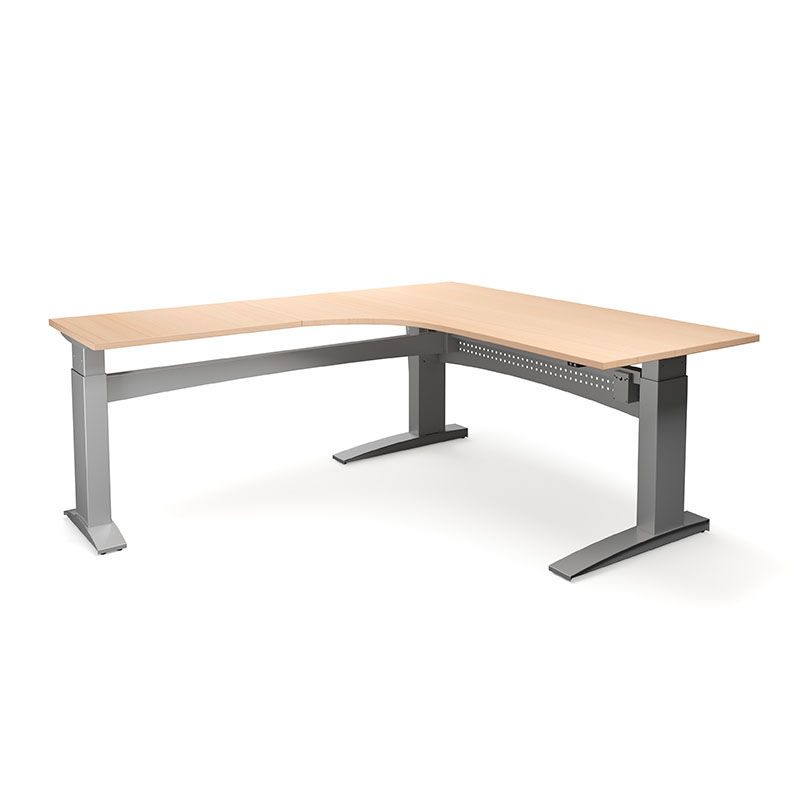 BeskrivningHöj och sänkbart hörnskrivbord Denver, vänster, LxB 1800x2000 mm, björk/silver