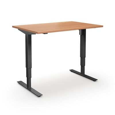 Höj och sänkbart skrivbord Atlanta, rak, LxB 1400x800 mm, bok/svart, finns i flera olika utförande och färger, max 150 kg belastning. Höj och sänkbart elstativ, H 630 - 1280 (slaglängd 650 mm) hastighet 25 mm/s, stativ lackerat i vitt, silver eller svart.