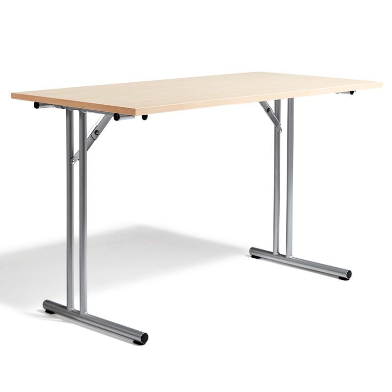 Konferensbord Byggbar, LxB 1200x600 mm, björk/silver. Ett fällbart konferensbord som är lätt att placera ut och anpassa efter eget behov. Kombinera med hörnskivor, frontpaneler eller mellanskivor och skapa ett bord helt efter ditt behov. Borden är hopfällbara med fällbara T-ben tillverkade av stålrör som finns i kromat och lackerat utseende. Längd: 1200 mm. Välj mellan bredden 450 mm eller 600 mm beroende på hur djupt du vill ha ditt bord. Skivan finns i bok, björk eller vit laminat.