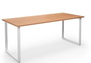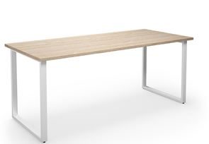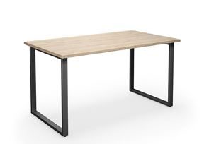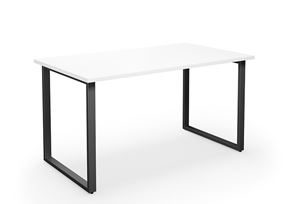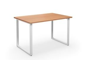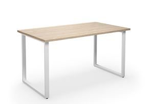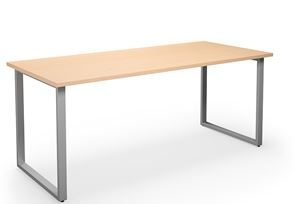 Bord DUO-O. Skrivbord med laminatskiva, höjd 740 mm inklusive skrivbordsskiva. Skrivbordet kan kompletteras med en hängande hurts.