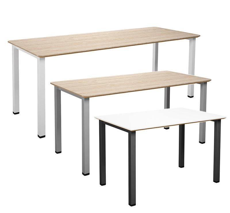 Rak skiva med en tålig yta som är lätt att göra ren. Fyrkantiga pulverlackerade stativ i stål gör att borden är stabila.