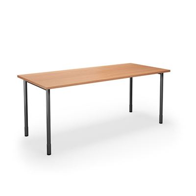 Bord DUO-C, rak skiva, LxB 1600x800 mm, bok/svart. Skrivbord med laminatskiva och runda ben som är justerbara i höjd mellan 700–800 mm, inklusive skiva.