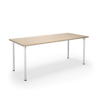 Bord DUO-C, rak skiva, LxB 1800x800 mm, ek/vit. Skrivbord med laminatskiva och runda ben som är justerbara i höjd mellan 700–800 mm, inklusive skiva.